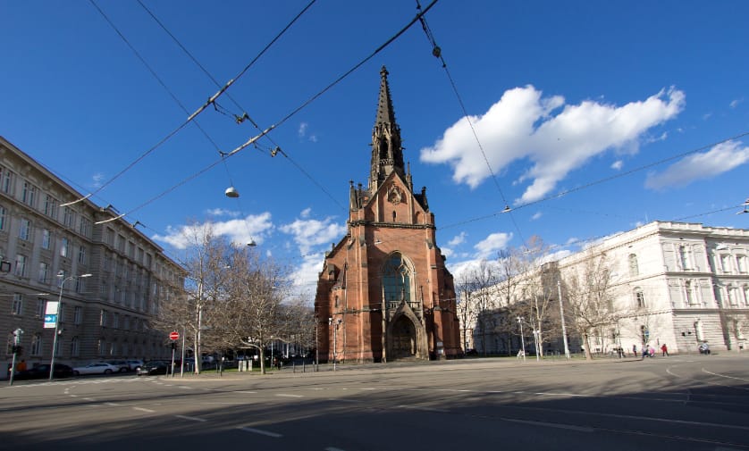 Komenského nám. 218/4 (kostel Jana Amose Komenského)Kurt Gödel patřil do stejné farnosti jako jeho matka, Marianna Gödelová, rozená Handschuhová, která Červený kostel navštěvovala.